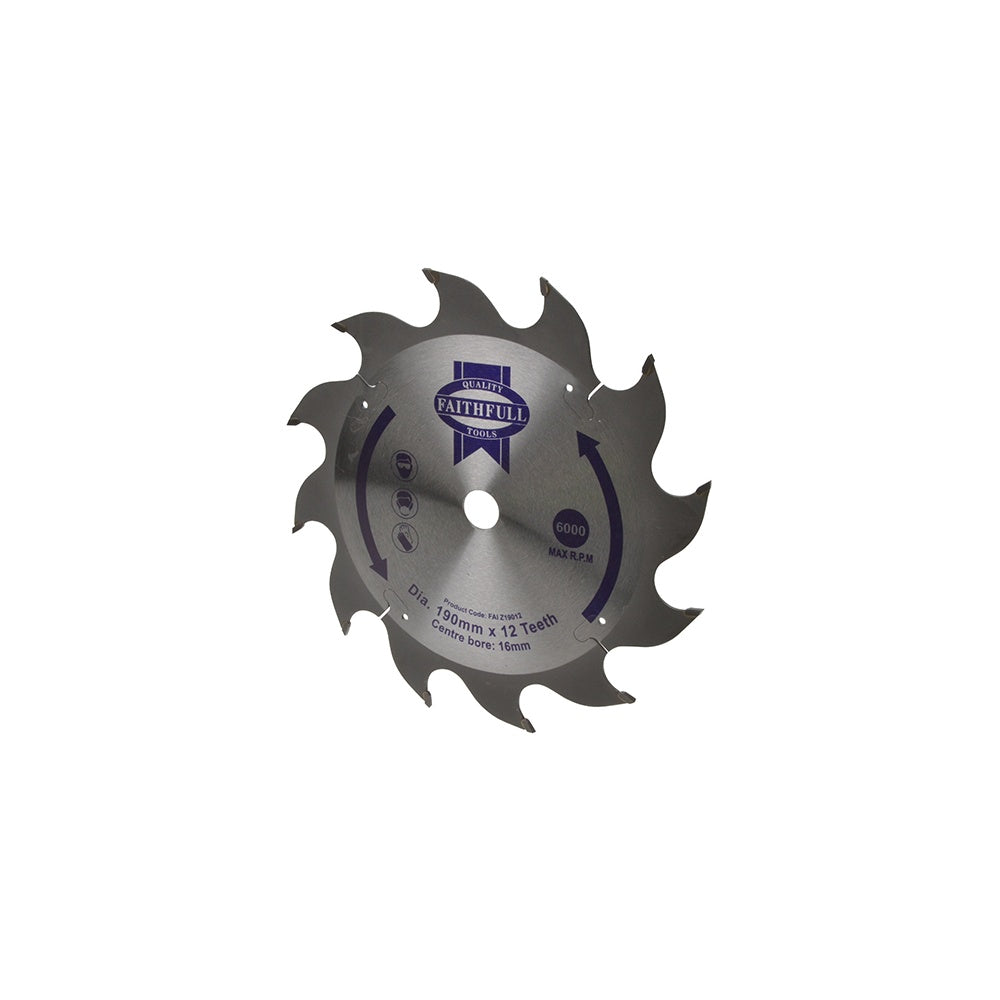 Faithfull Circular Saw Blade 190 x 16mm x 12T Fast Rip