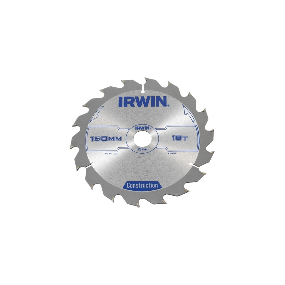 • The IRWIN IRW1897191 Circular Saw Blade has the following specifications: Blade diameter: 160mm.Bore: 20mm.Reduction Ring: 16mm.Teeth: 18.